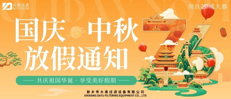 尊敬的客戶及合作伙伴:秋風(fēng)送爽,丹桂飄香。值此國慶與中秋雙節(jié)來臨之際,謹(jǐn)向您及家人致以zui誠摯的節(jié)日祝福!根據(jù)國家法定節(jié)假日安排,結(jié)合公司實際情況,現(xiàn)將2025年國慶+中秋雙節(jié)放假安排及相關(guān)事項通知如下:一、放假時間2025年10月1日(星期三)至10月6日(星期一),共計6天。10月7日(星期二)起正常上班。9月28日(周日)、10月12日(周日)補班。二、業(yè)務(wù)服務(wù)說明放假期間,公司線上咨詢通道保持暢通。銷售人員將不定期查看并回復(fù)您的咨詢,但受假期影響,可能存在回復(fù)延遲的情況,敬請諒解。如遇緊急事項,您可撥打以下熱線:王經(jīng)理13613905650;李經(jīng)理13839073363,我們將竭誠為您服務(wù)。三、生產(chǎn)安排提醒因車間節(jié)前生產(chǎn)訂單已排滿,為確保假期前后生產(chǎn)質(zhì)量與效率,放假期間(10月1日至10月6日)將暫停安排新生產(chǎn)訂單生產(chǎn)。節(jié)前已下單的訂單將按原計劃正常推進(jìn),放假期間新接訂單將統(tǒng)一順延至10月7日復(fù)工后,按序安排生產(chǎn)。由此帶來的不便,我們深表歉意,感謝您的理解與支持。四、溫馨提示假期出行請注意安全,做好個人防護(hù)。公司官網(wǎng)及社交媒體平臺將持續(xù)更新節(jié)日動態(tài)及服務(wù)資訊,歡迎隨時關(guān)注。佳節(jié)共團(tuán)圓,服務(wù)不間斷。值此雙節(jié)同慶的美好時刻,衷心感謝您長期以來對我司的信任與支持!我們期待在節(jié)后以更飽滿的熱情、更優(yōu).質(zhì)的服務(wù)與您攜手同行,共啟新程!此致敬禮!新鄉(xiāng)市大禹過濾設(shè)備有限公司2025年9月28日